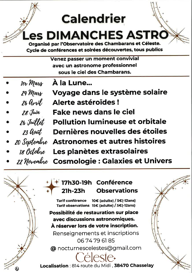 Organisé par l'Observatoire des Chambarans et Céleste